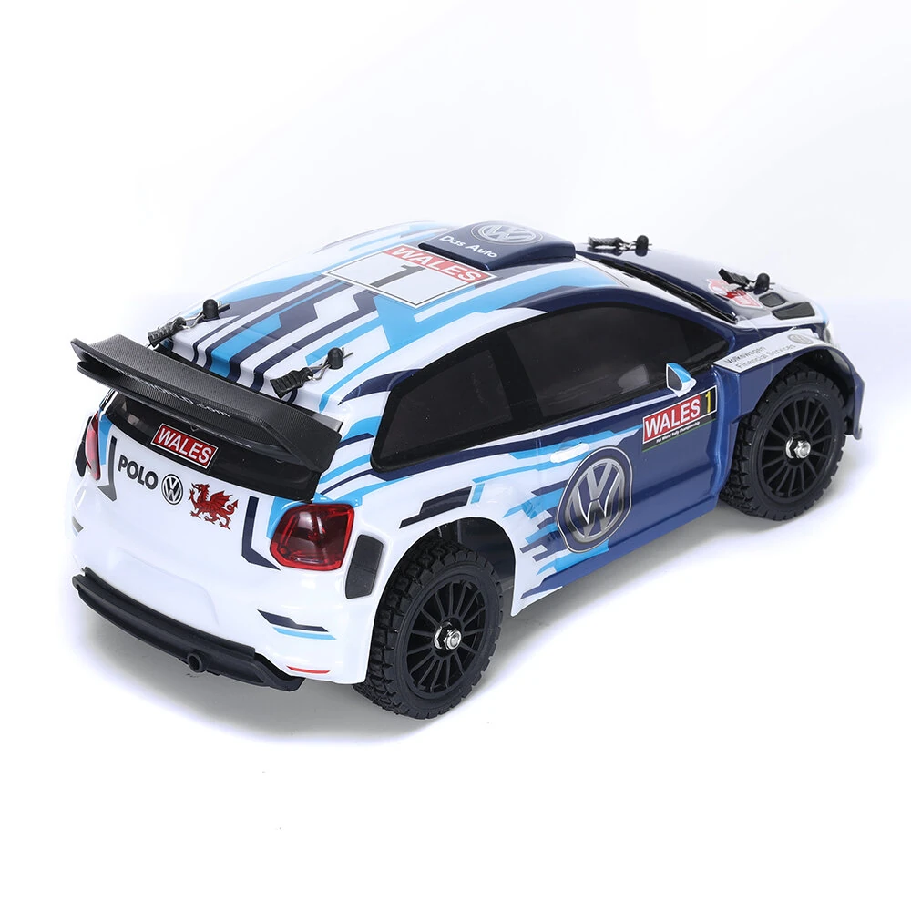 The power-system comprises a 2845/3700 KV brushless motor and a 45A ESC (compatible with 2S or 3S setups), allowing top speeds of ≈ 43 km/h on 2S and up to ≈ 63 km/h on 3S in some configurations.  Additional features include a 2.4 GHz radio system (≥120 m range) for interference-free control, multiple tire sets for drift/road/rally surfaces, and precision suspension tuning for varied terrain.