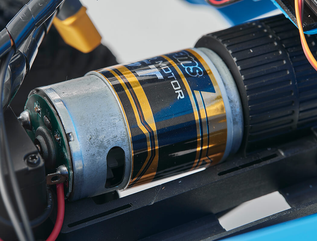 This 1/10 remote control climbing vehicle FJ40 presented by FMS uses an ABS hard body to accurately restore the shape and details of the real vehicle. The left and right doors can be opened, and the door hinge adopts the same metal hinge structure as the real car. The roof can be removed and transformed into a compact pick-up. The hood can be opened, and hidden below are the 35T 550 motor, high-quality brushed ESC and receiver.