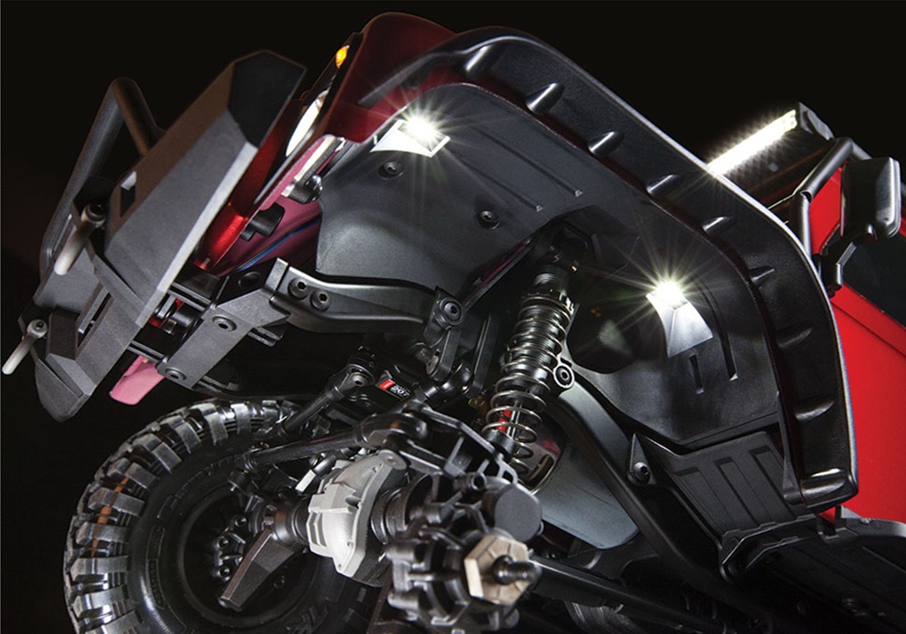 Traxxas LED Rock Lights install directly into the inner fenders of compatible TRX-4®and TRX-6® trucks. Rock lights help illuminate obstacles underneath for trouble-free nighttime crawling. The kit includes two LED modules per wheel, ensuring a flood of light throughout the underside of the truck. Down lighting in the wheel wells combined with the headlight/taillight kit make it easy to see the orientation of the vehicle in the dark.