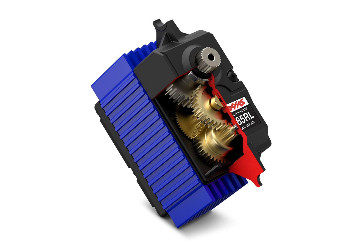 The High Torque Maxx Servo is the ultimate steering upgrade for your X-Series™ vehicle, Maxx®, or Maxx Slash®. With a staggering 650 ounce-inches of torque and full steel gears, the High Torque Maxx Servo delivers total steering authority on even the largest Sledgehammer® tires. The case features an anodized aluminum center section with cooling fins and ball bearings for increased precision. The servo includes a stiffer servo saver spring and steel steering linkage for maximum steering authority and control during high speed driving.