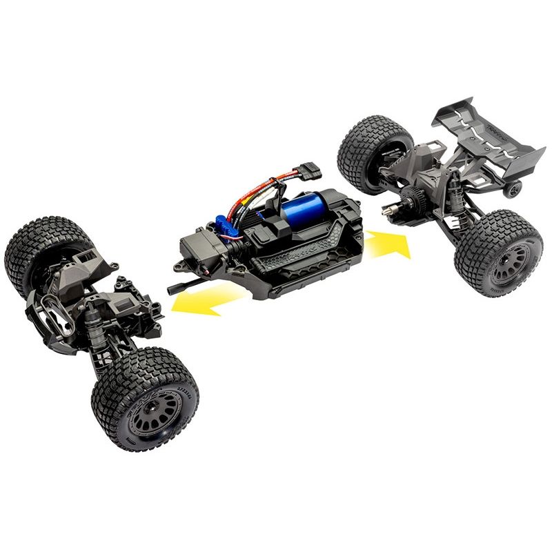 The same 11.1-volt VXL-3s brushless power that fuels Traxxas’ fastest 1/10 scale vehicles now fits into a compact platform for the first time. The result: mind-blowing acceleration, wheel-lifting torque, and 55+ mph top speed (with optional 3s LiPo).