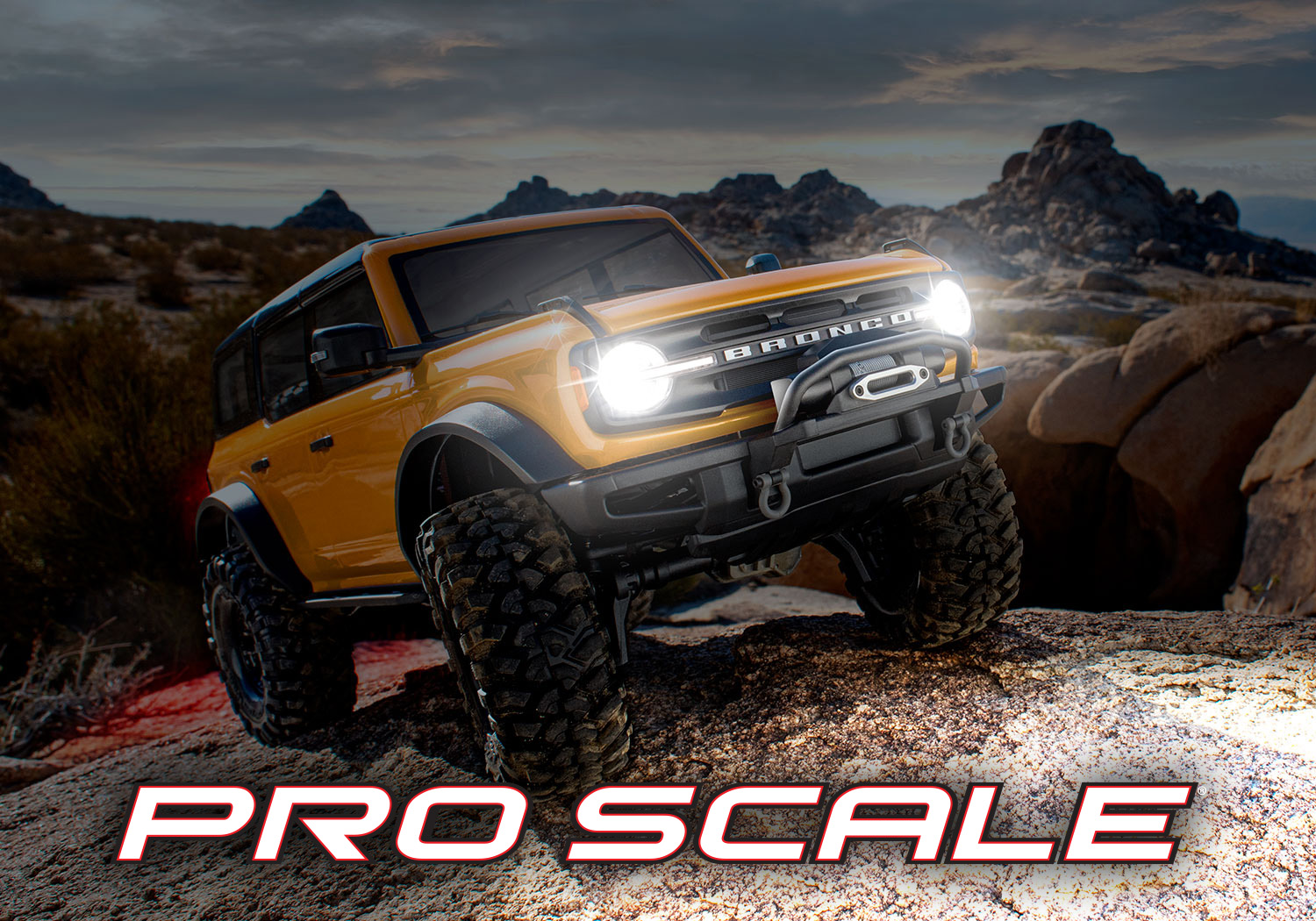 All the lighting control of a full-scale Bronco is at your fingertips with the Pro Scale®LED light kit for your 2021 TRX-4® Ford® Bronco. Turn the headlights on and off and select high or low beams. Signal for turns with automatic cancellation or put on the hazard lights. The brake lights glow when you slow or stop. Hit reverse, and backup lights glow automatically. For maximum power and convenience, add Traxxas Link and the optional 6511 Wireless Module (sold separately) to configure your lights right from your iOS or Android device.